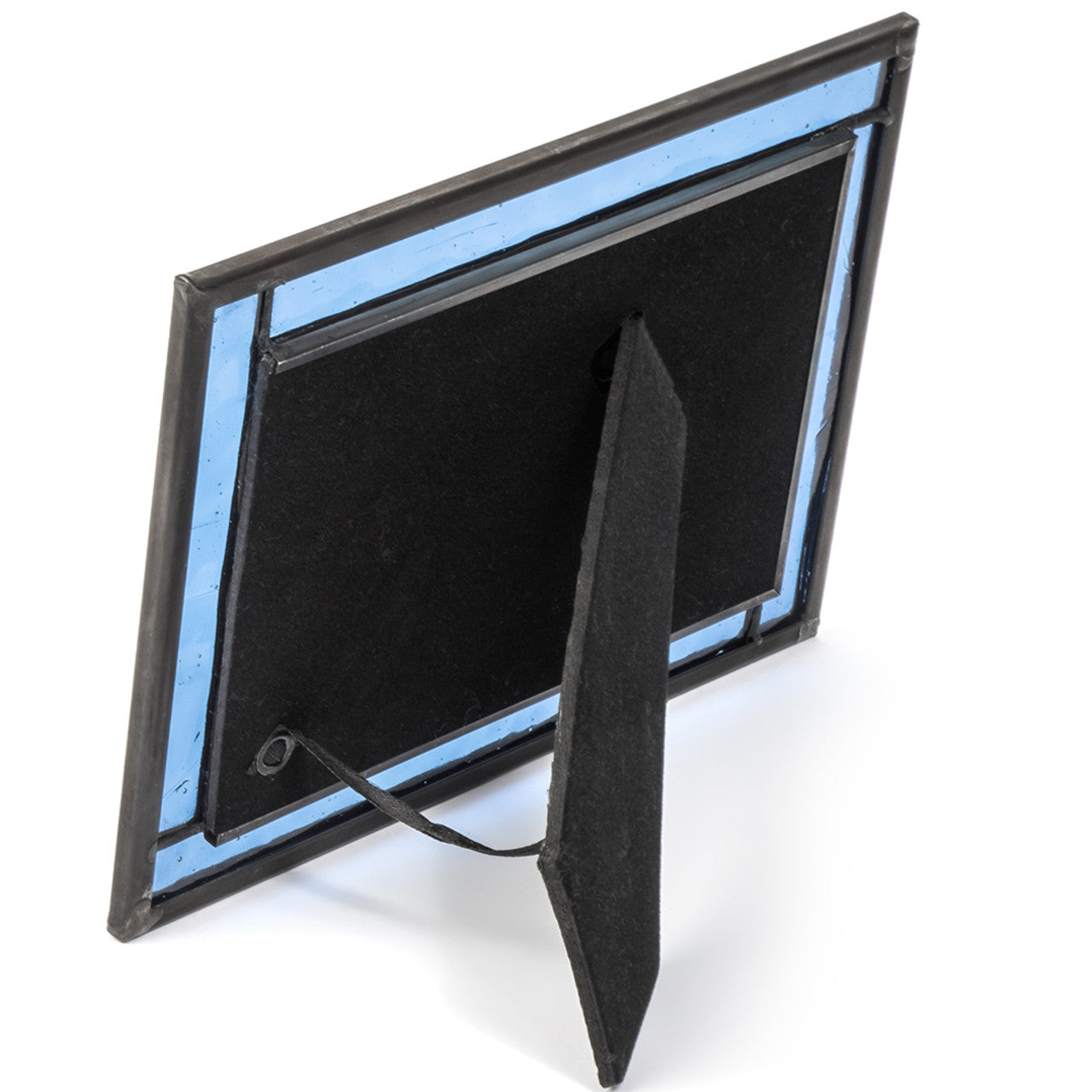 A photo frame simple enough to fit any home decor with an emphasis on color. This stained glass picture frame features a translucent blue that will brighten the dark corners of any home or office.