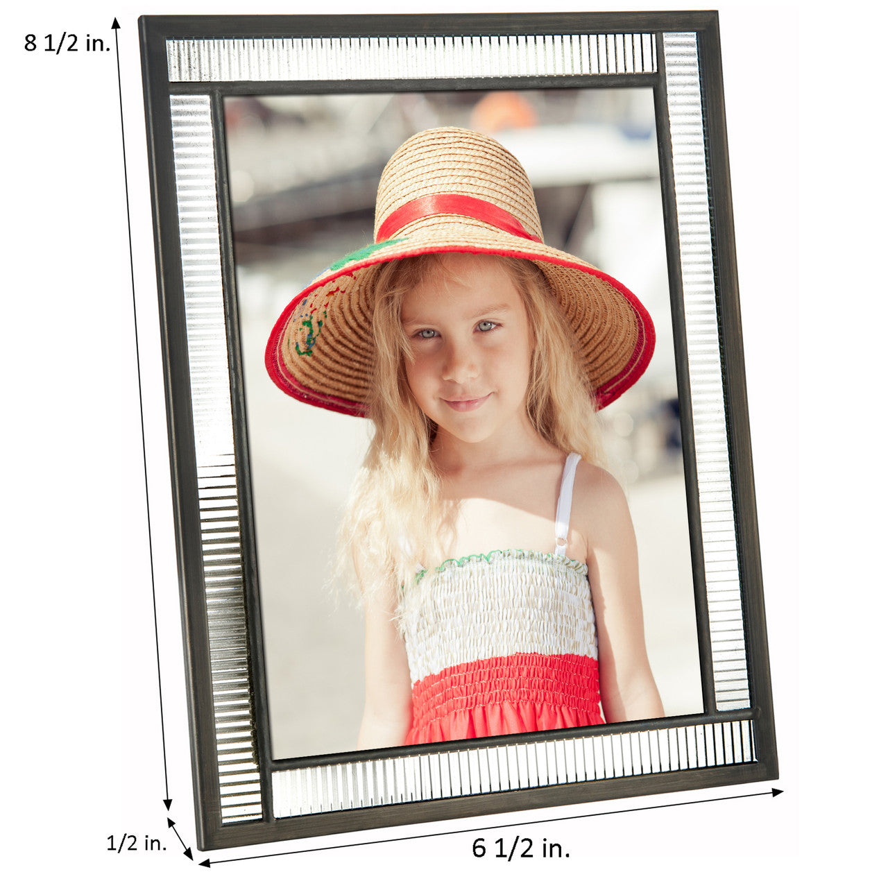 The easel back allows the photo to be displayed horizontally or vertically on any tabletop, dresser or shelf.