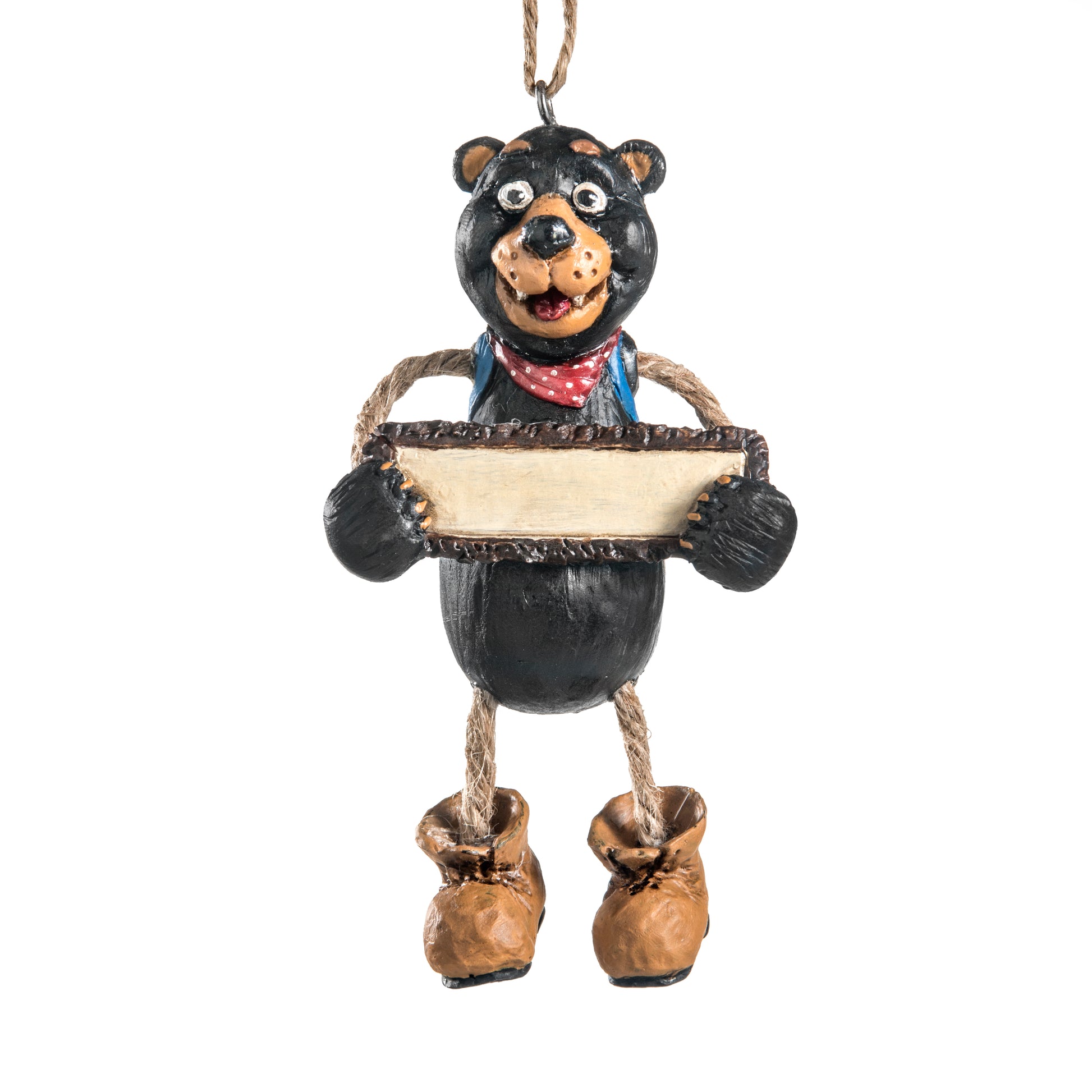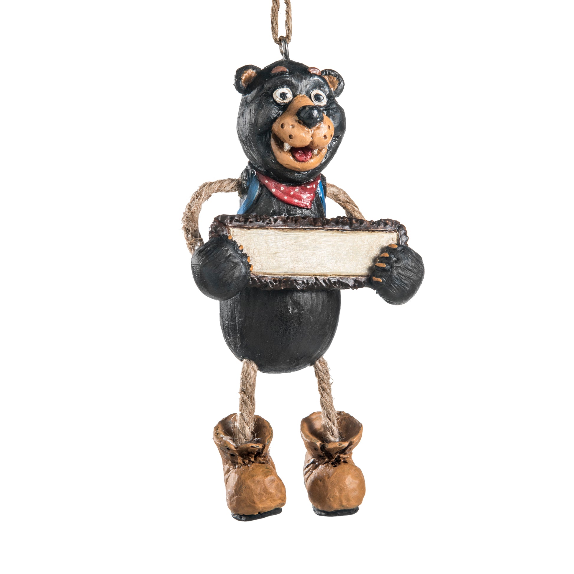 Adventure awaits! This happy hiker bear is ready to explore, complete with backpack, boots, and plenty of charm. An original Bert Anderson design crafted in sturdy resin, it features a blank sign for your custom name or favorite trail. Ideal for parks, camp stores, and mountain towns. (Approx. 5" tall, not including hanger.)