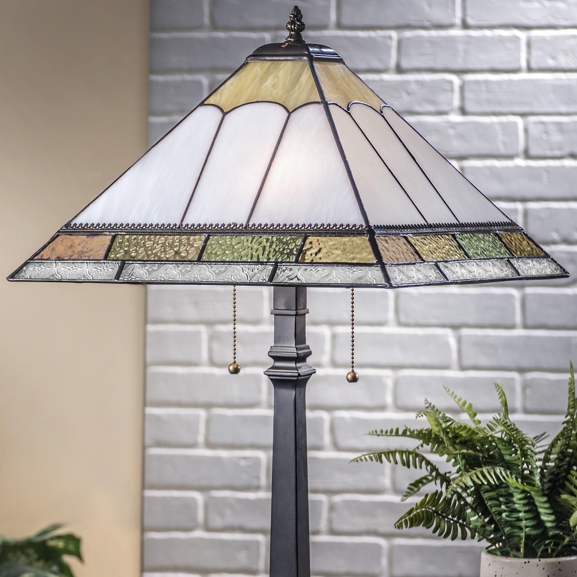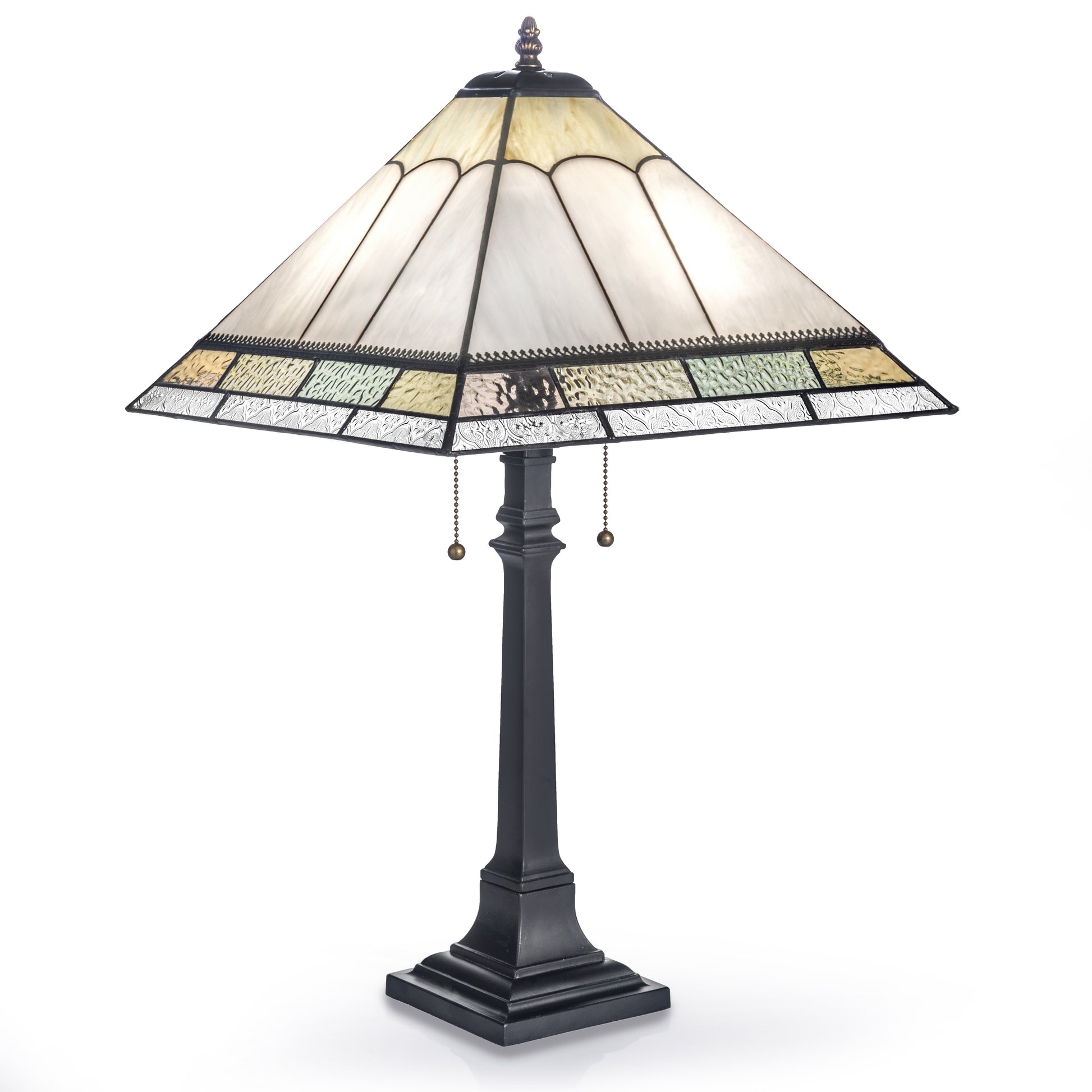 Bring soft light to any area with this mission-style stained glass table lamp.