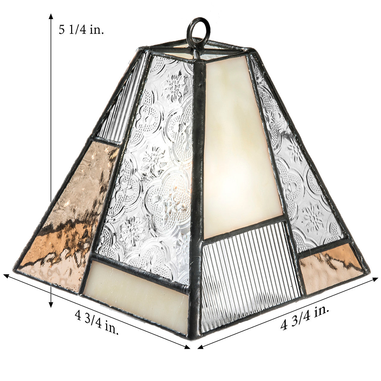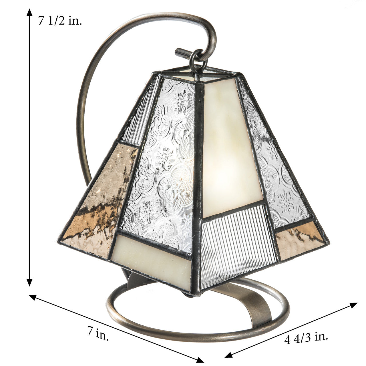 The simple clean lines in this stained glass lamp echo the arts and crafts style that blends easily into any home décor. Soft shades of ivory opalescent and translucent peach/beige are complimented with clear textures that diffuse the light making this the perfect ambient light for the bedroom, bathroom or nursery. Each stained glass mini lamp is carefully handcrafted by skilled artisans using a copper foil and solder technique developed by Louis Comfort Tiffany in the late 1800’s. This age-old art form combined with 21st century designs creates the perfect combination for unique home décor.