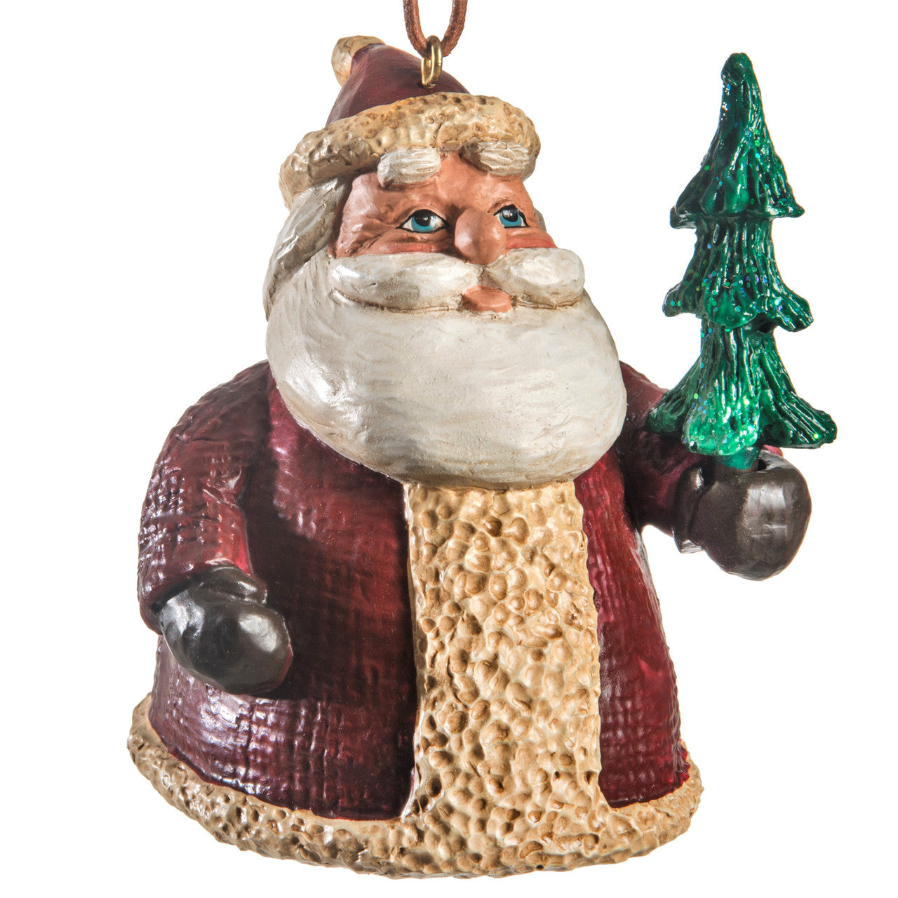 With a traditional old world look this Santa is ready to trim your tree. Hollow on the inside his boots dangle below his round belly. Available in red as shown here or in antique white (Bac 213)
