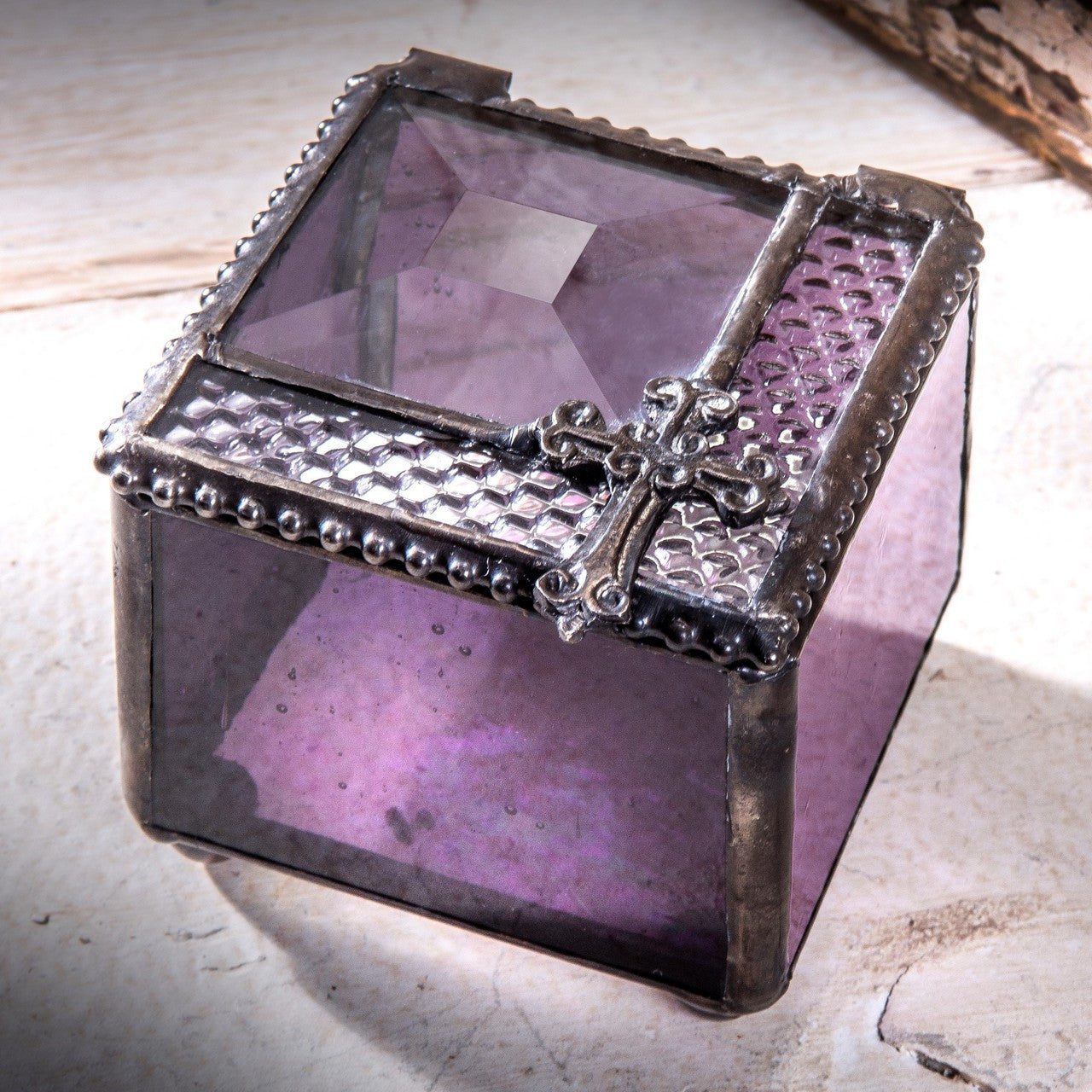 Box 349-3 Purple Glass Box with Cross