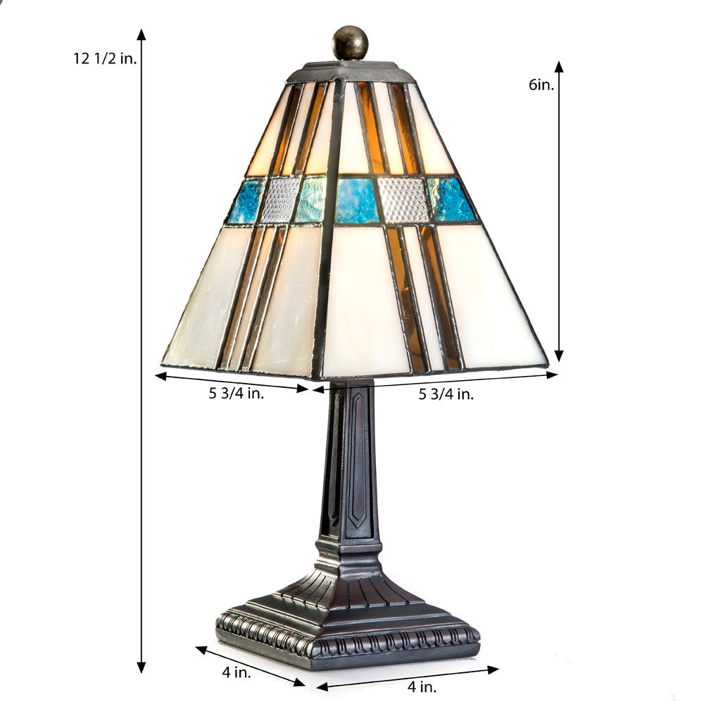 The perfect blend of mission and contemporary design this table lamp has been handcrafted in the Tiffany style of stained glass it features an ocean blue and brown translucent. Each lamp is carefully handcrafted by skilled artisans using a copper foil and solder technique developed by Louis Comfort Tiffany in the late 1800’s. This age-old art form combined with 21st century designs creates the perfect combination for unique home décor.