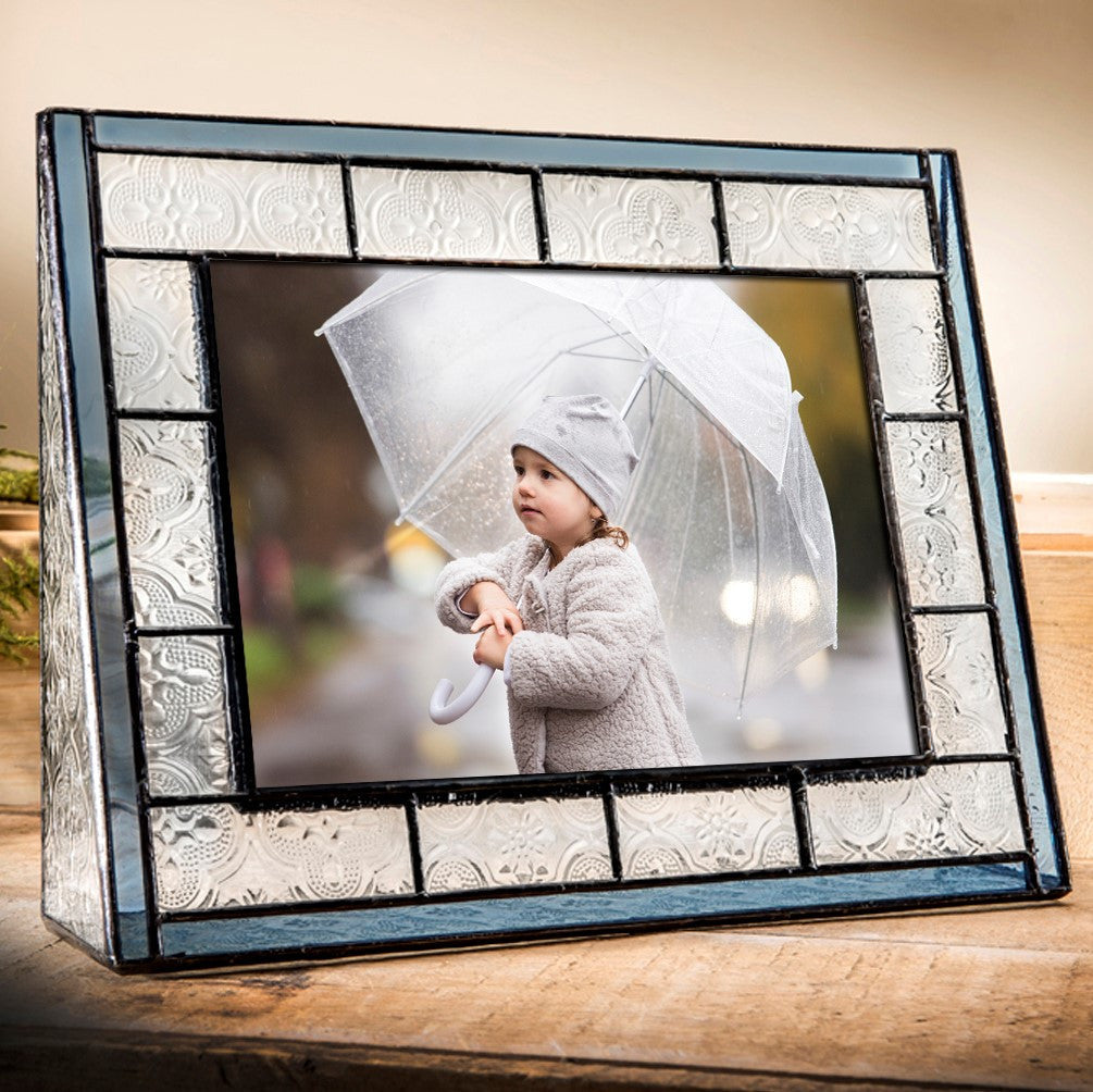 This handcrafted stained glass picture frame has been made with lead free solder to protect you and the environment.